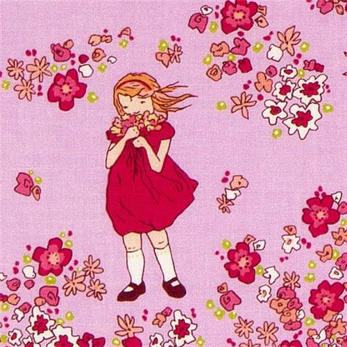 Tissu Michael Miller Summer Gardens, fillette et fleurs