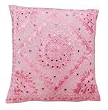 1 coton coussin pièce taie d'oreiller brodée rose boîtier du rétroviseur travail jeter décoration inde nouveau 15 "