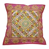 | ✚✚✚ 1 coussin brodé pièce décorative couvrir patchwork rose à la main jeter oreiller couverture 17 "pouces Handmade tissu mélange coussin patchwork couverture.