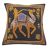 | ✚✚✚ 1 coussin en coton couvrir pièce brodée à la main forme chameau noir jeter inde 17 "pouces - Tissu de coton brodée à la main Housse de coussin.