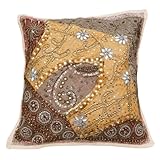 1 Inde Piece Beaded Beige Housse de Coussin décoratif tapisserie à la main en coton Oreiller Accueil Case 17 "Décor cm- Housse de coussin patchwork fait main tapisserie. - Beige, prune, orange pièces de tissu de couleur différentes sont utilisées sur la face avant -.. Sauvegarde couleur est beige en tissu de coton mélangé - Perles, paillettes, motif, fil à broder et fil métallique travail est effectué sur la face avant -. insert oreiller n'est pas inclus. - Entretien: Nettoyage à sec - Taille: 17 "X 17" pouces (environ). Cette housse de coussin unique a conçu avec brio par des méthodes traditionnelles ce qui est inexplicable charme de cet art coussin. Cette taie d'oreiller magnifique coussin va ajouter du style chaleureux et élégance à n'importe quelle pièce de votre maison.