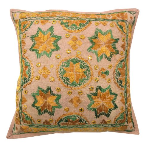 1 Miroir de travail Housses de coussin brodé Coton Taie d'oreiller Brown Inde 16 "pouces - La couleur de base est brun clair. - Couleur de dos est brun clair. - Il est vert et jaune fil à broder de couleur et travail de miroir sur la face avant -. insert oreiller n'est pas inclus. - Taille: 16 "X 16" pouces (environ). Cette housse de coussin unique a conçu avec brio par des méthodes traditionnelles ce qui est inexplicable charme de cet art coussin. Cette taie d'oreiller magnifique coussin va ajouter du style chaleureux et élégance à n'importe quelle pièce de votre maison. Sa superbe qualité et le design vous rendra fier de votre achat ..
