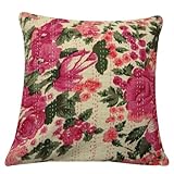 1 Pièce blanche en coton Kantha Inde Housse de coussin main peinture décorative florale oreiller canapé Case Accueil Décor 16 "pouces