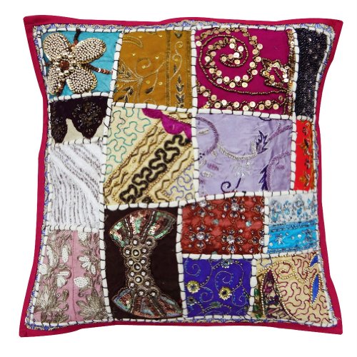 1 pièce Coussin décoratif coton rose perlée couvre oreiller patchwork maison décor cas jeter inde 17 "pouces