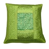 1 pièce de soie verte à la main Housse de coussin patchwork fil de tissage décoration de la maison taie d'oreiller 16 "pouces