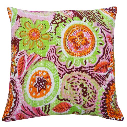 1 pièce décorative kantha coussin couverture pur coton rose à la main floral décoratif cousu taie d'oreiller inde décor à la maison 16 "pouces