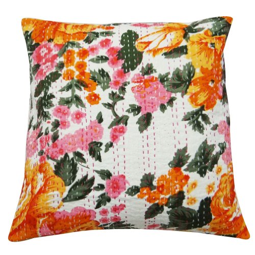 1 pièce inde blanc pur coussin housse en coton imprimé motif floral kantha coussin décoratif canapé à la maison décor cas 16 "pouces .
