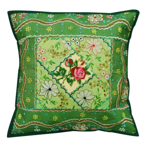 1 pièce inde coussin en coton vert couvrent floral brodé cas oreiller canapé jeter décoration de la maison 17 "pouces?-. Housse de coussin patchwork fait main tapisserie