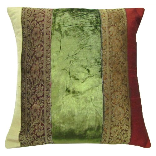 1 pièce inde mélange à la main en soie verte canapé taie d'oreiller millésime sari patchwork décoratif décoration maison coussin couverture 16 "pouces