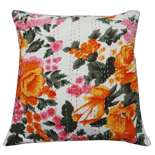 1 pièce indien de coton blanc kantha housse de coussin cousu main florale oreiller canapé à la maison décor cas 16 "pouces - Le blanc est la couleur de base à l'orange, le rose et le vert la couleur du tissu imprimé floral sont utilisés sur le front. - fil de couleur blanc et rose est utilisé pour élaborer le modèle kantha -. couleur est blanche Retour au motif solide. - Il a un boîtier à glissière à l'arrière -. insert oreiller n'est pas inclus. - Taille: 16 "X 16" pouces (environ). Il peut aussi être considéré comme objet de décoration car ils sont largement utilisés pour la décoration maison d'une manière très élégante. Ceci couvre magnifiques coussins oreiller va ajouter du style chaleureux et élégance à n'importe quelle pièce de votre maison.