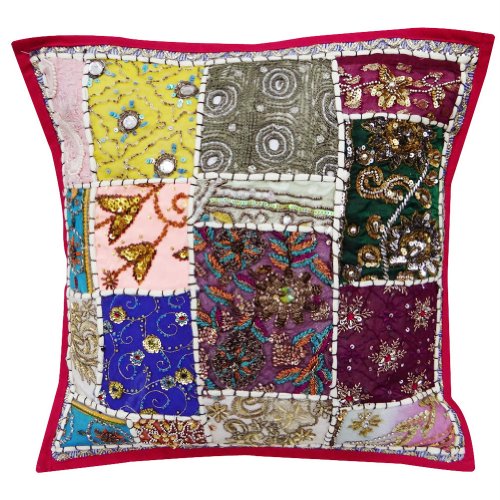 1 Pièce main indien Patchwork Décoration perles Housse de coussin Taie d'oreiller décoratif Jetez Inde 17 "cm - pièces de tissu multicolores différents sont utilisés sur la face avant -. Sauvegarde couleur est le magenta avec un tissu en coton mélangé -. Perles, paillettes, motif, filet et .. métallique broderie fil se fait sur la face avant - insert oreiller n'est pas inclus - Entretien: nettoyage à sec > - Taille: 17 "X 17" pouces (environ). Cette housse de coussin unique a conçu avec brio par des méthodes traditionnelles ce qui est inexplicable charme de cet art coussin. Cette taie d'oreiller magnifique coussin va ajouter du style chaleureux et élégance à n'importe quelle pièce de votre maison.