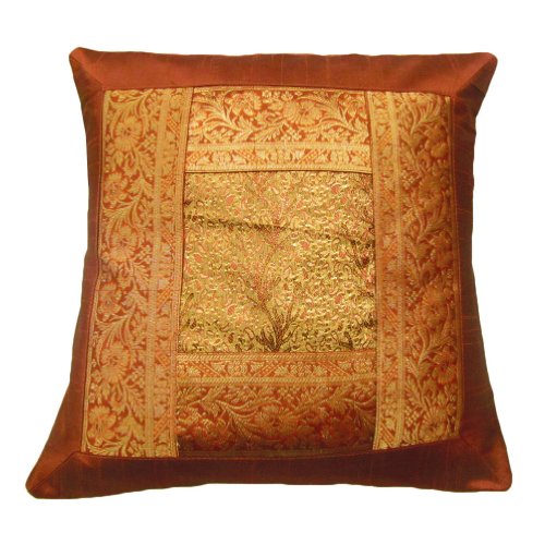 1 pièce à la main coussin d'orange couverture en soie patchwork taie d'oreiller décoratif jeter décoration inde 16 "pouces