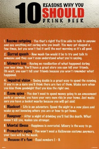 10 Reasons to Drink Alcohol Poster (24.00 x 36.00) .